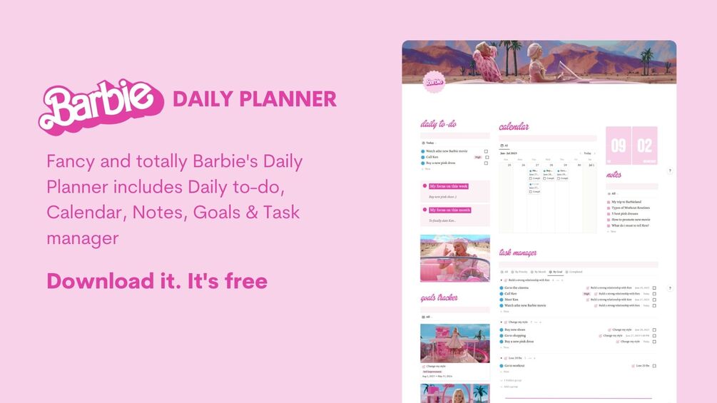 Welcome to Barbie's Daily Planner, the all-in-one solution that brings Daily To-Do lists, Calendar, Notes, Goals, and Task Manager together in one enchanting Notion template.
