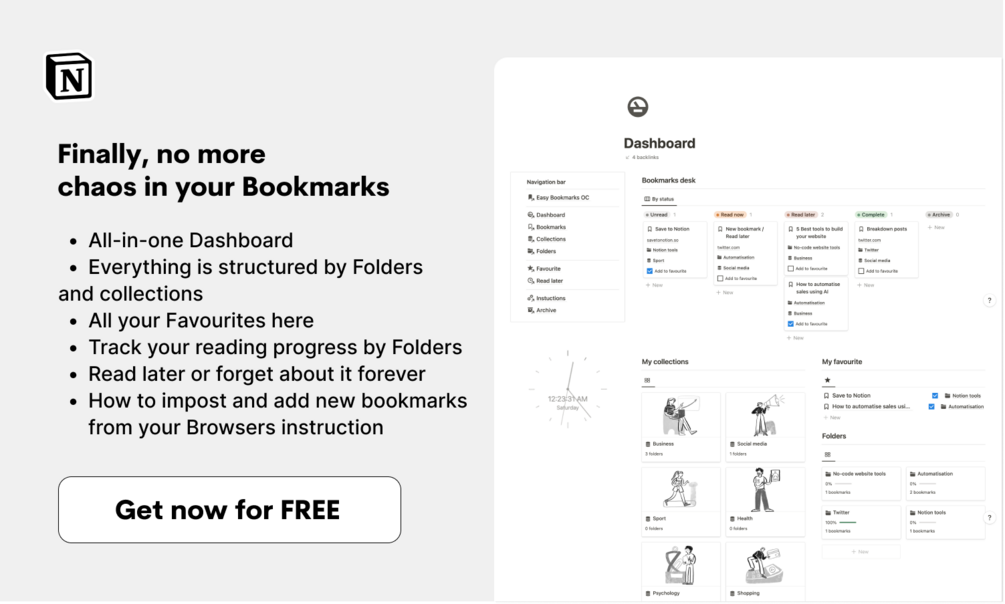 You'll get all-in-one solution to keep your bookmarks organised and structured