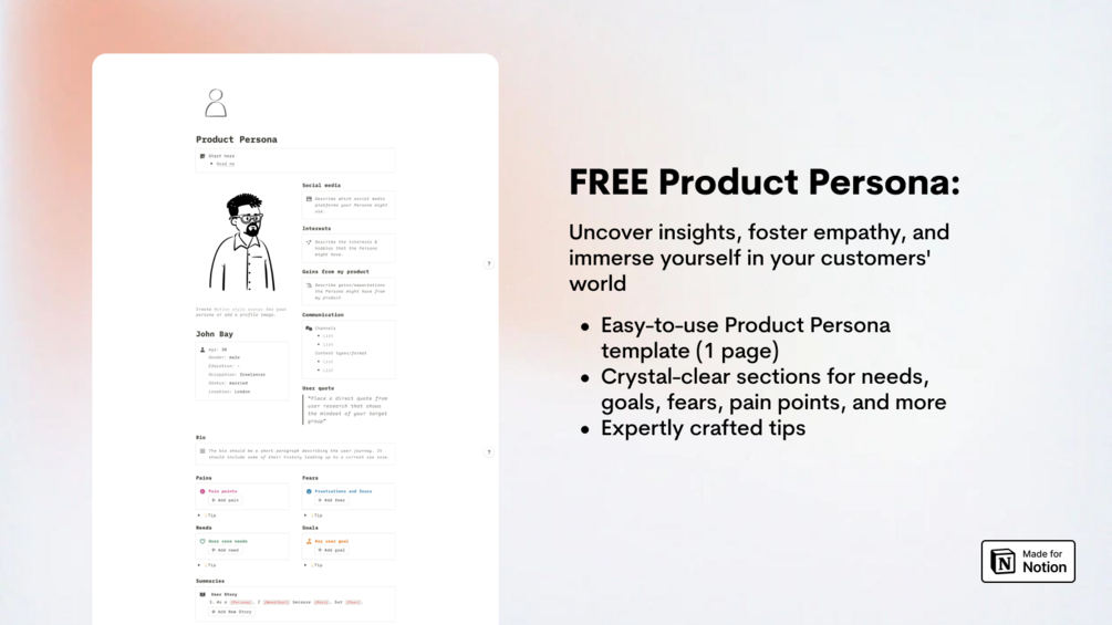 - Crystal-clear sections for needs, goals, fears, pain points, and more